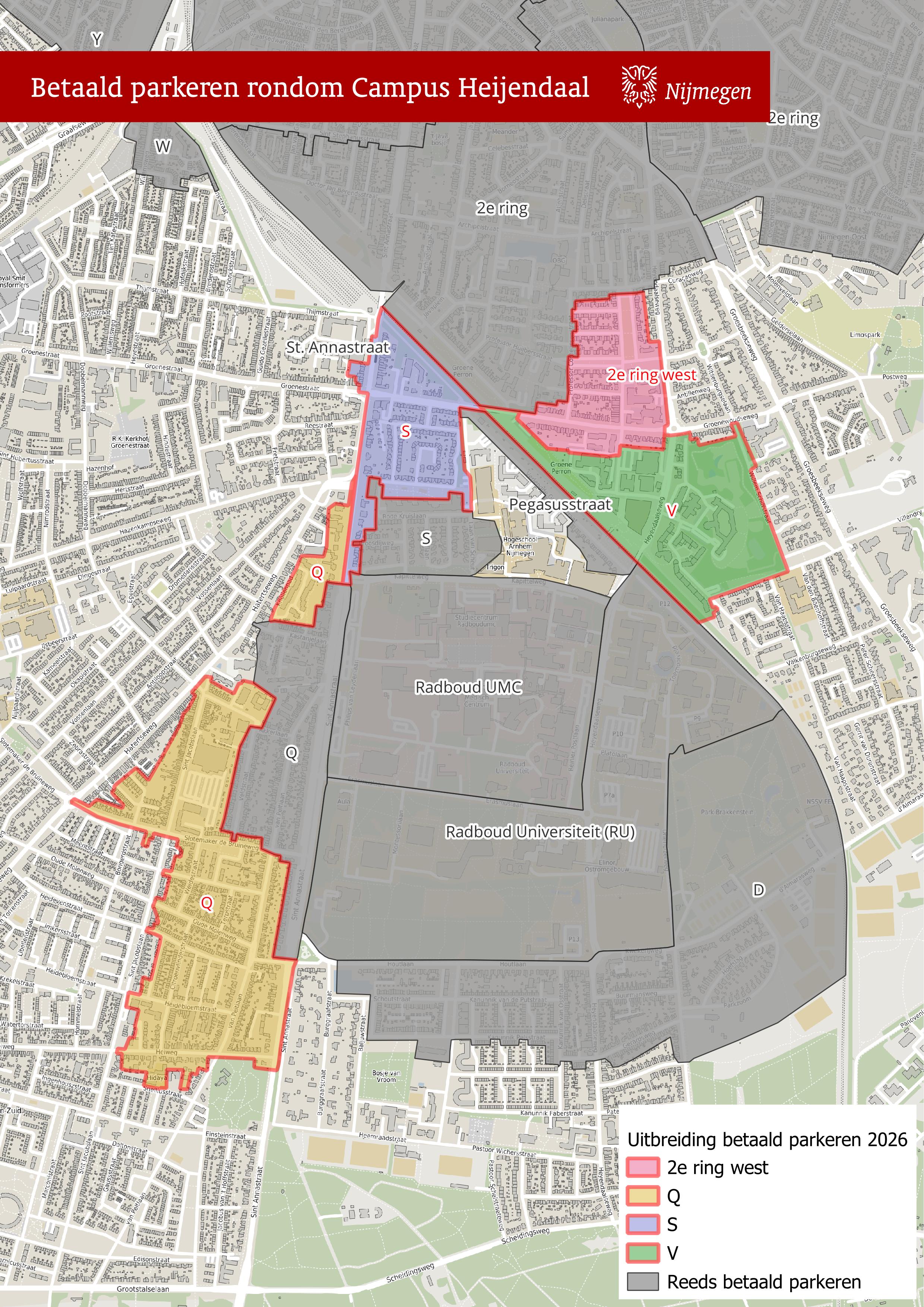 Vanaf 1 juni 2026 geldt betaald parkeren ook in andere buurten rondom Campus Heijendaal. In december voerde de gemeente al betaald parkeren in op de Verlengde Groenestraat en in een aantal straten van Brakkenstein. Deze maatregel is getroffen om langparkeren in de omliggende woonwijken door medewerkers en andere bezoekers van de campus tegen te gaan.